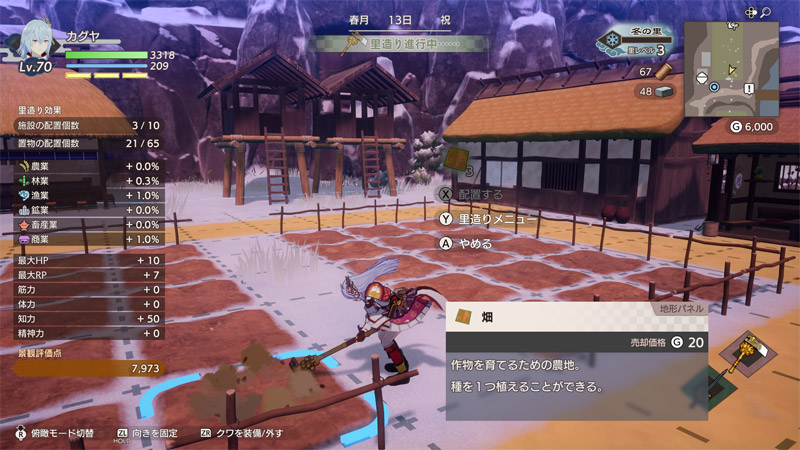 里の復興荒れ地を整地して田畑を作り、建物や置物を作って里を復興させて行きましょう。