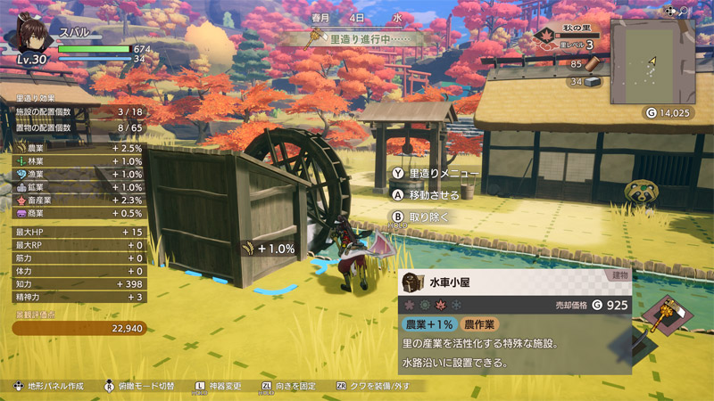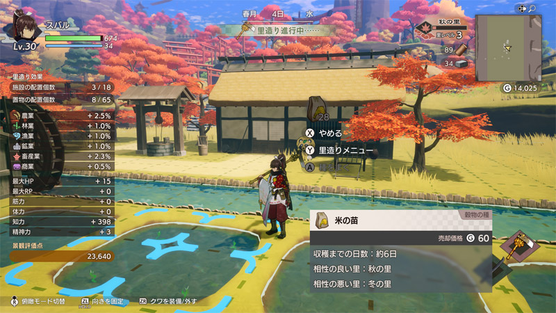 生活に便利な里や、景色に特化した里、農業に特化した里などを自由につくることが可能です。
