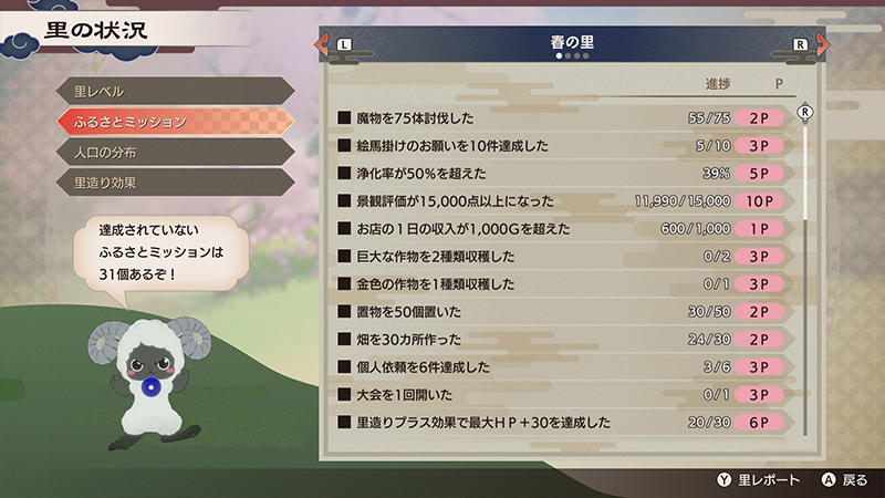 いろんな「ふるさとミッション」にチャレンジしてみましょう。牧場物語を進めていくと「牧場」を作れるようになります。