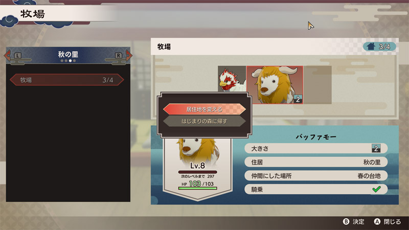 旅の途中、心を通わせた魔物を「牧場」に住まわせることができます。